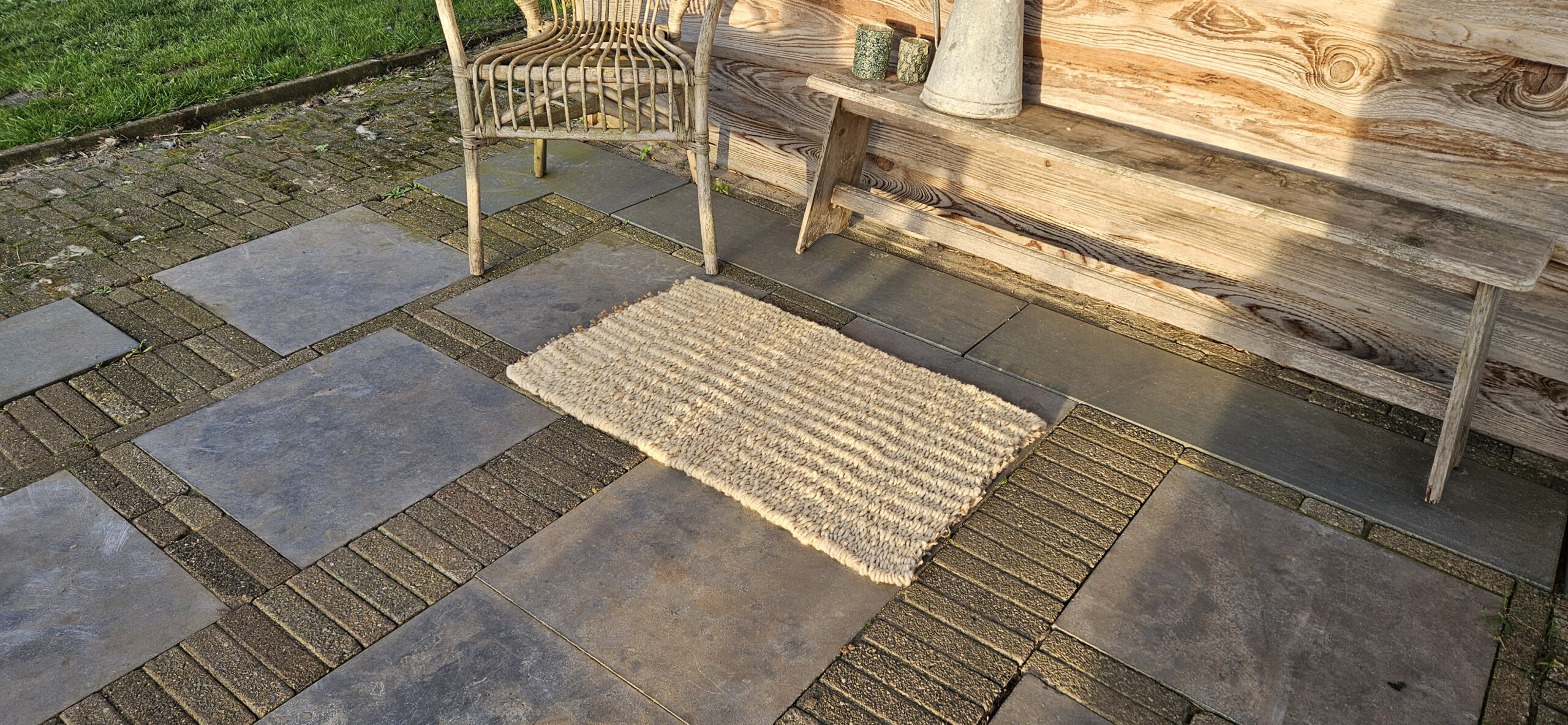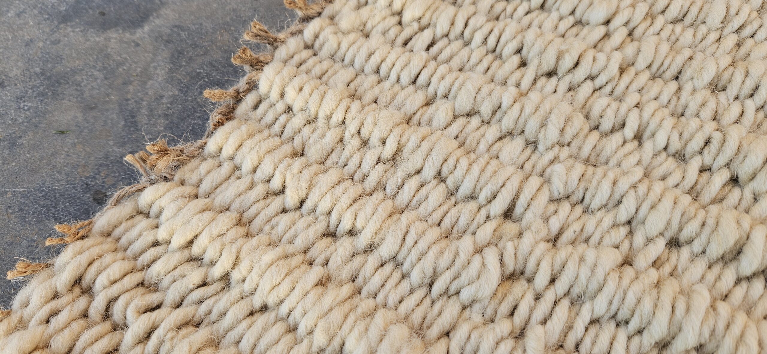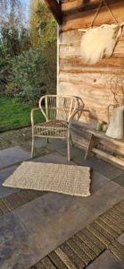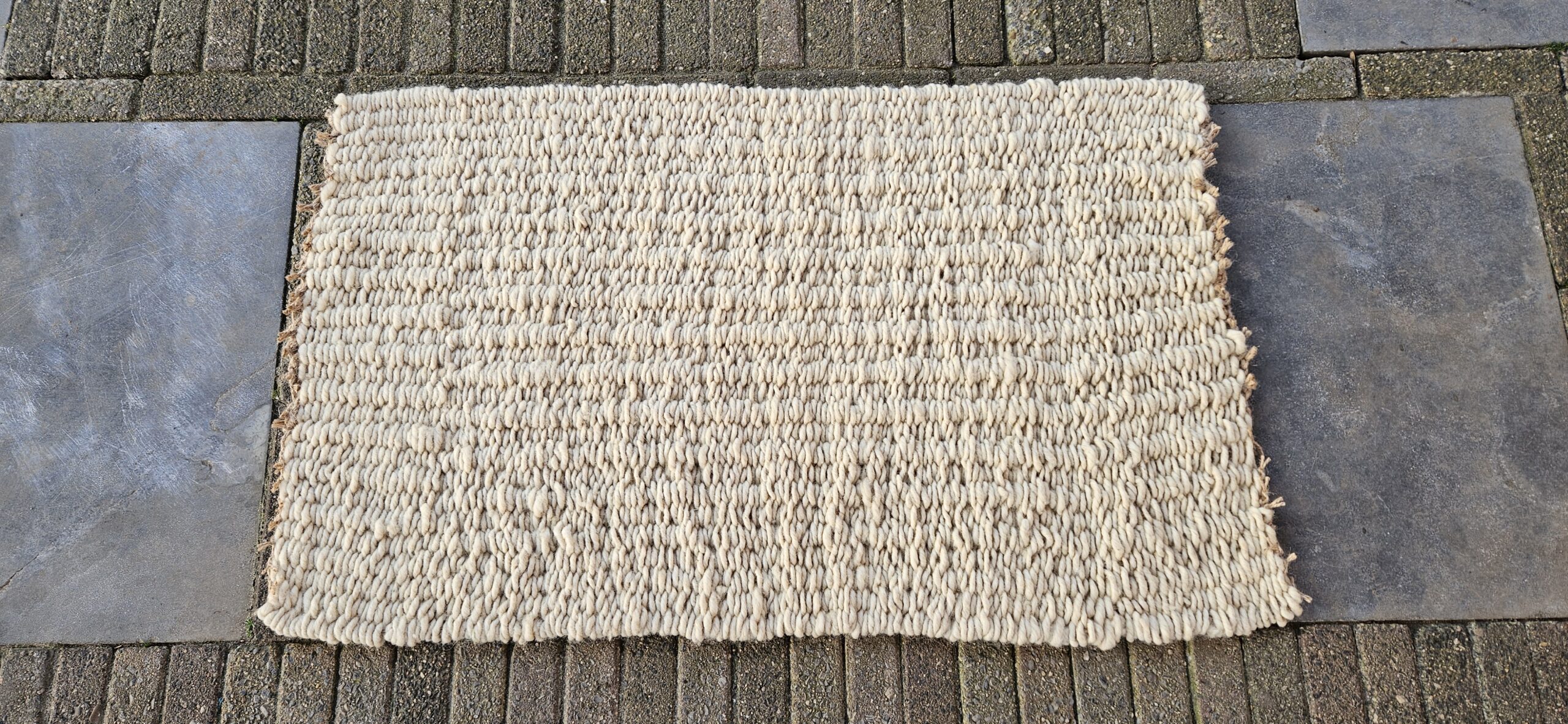 De afmeting van dit wollen kleed is 54 cm x 88 cm.