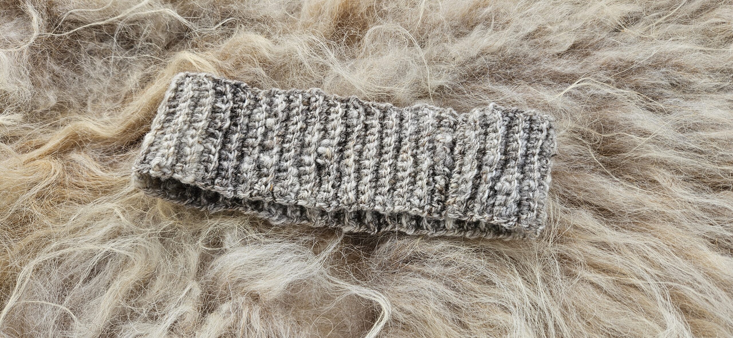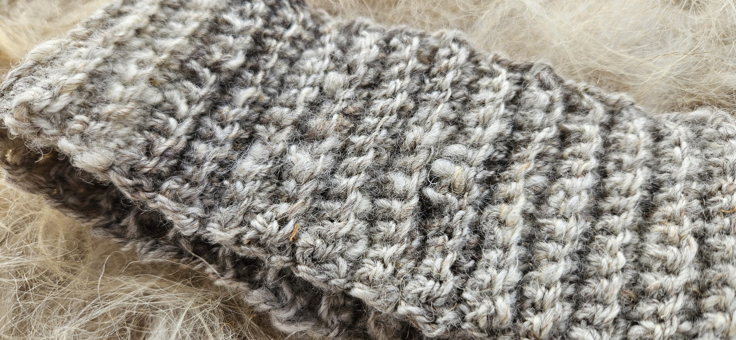 Hoofdband/ oorwarmers, gehaakt van handgesponnen schapenwol. Geschikt voor een hoofdomtrek van ca 56/57/58 cm.