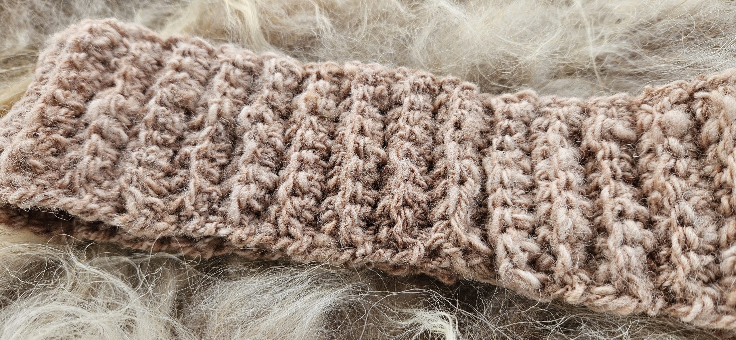 Hoofdband/ oorwarmers van handgesponnen wol. Geschikt voor een hoofdomtrek van ca 56/57/58 cm.