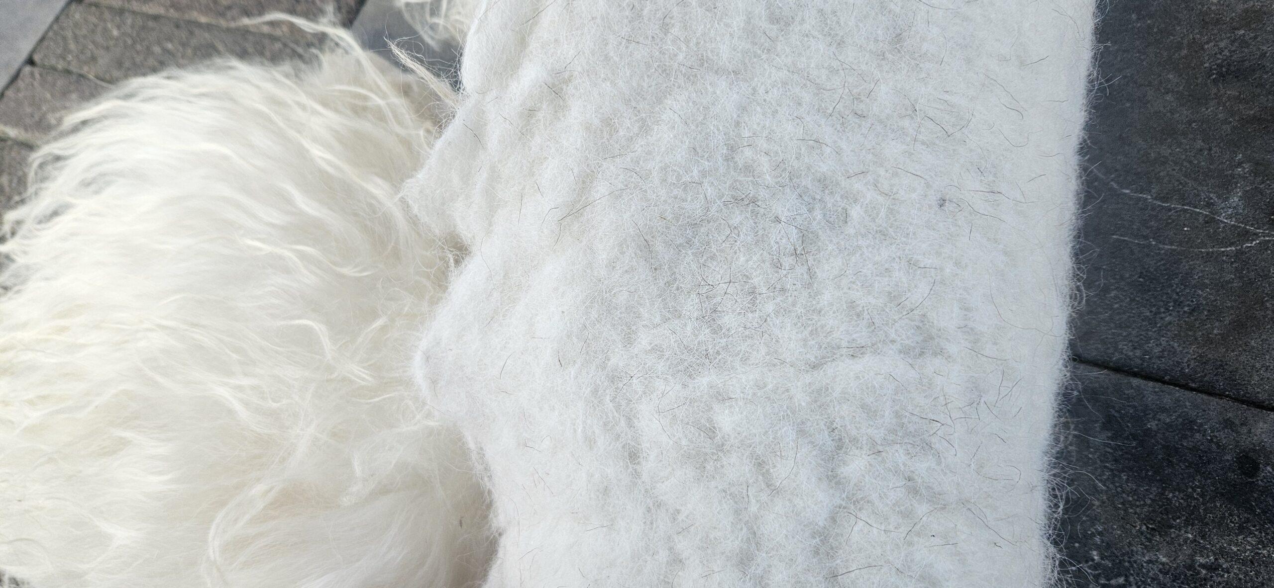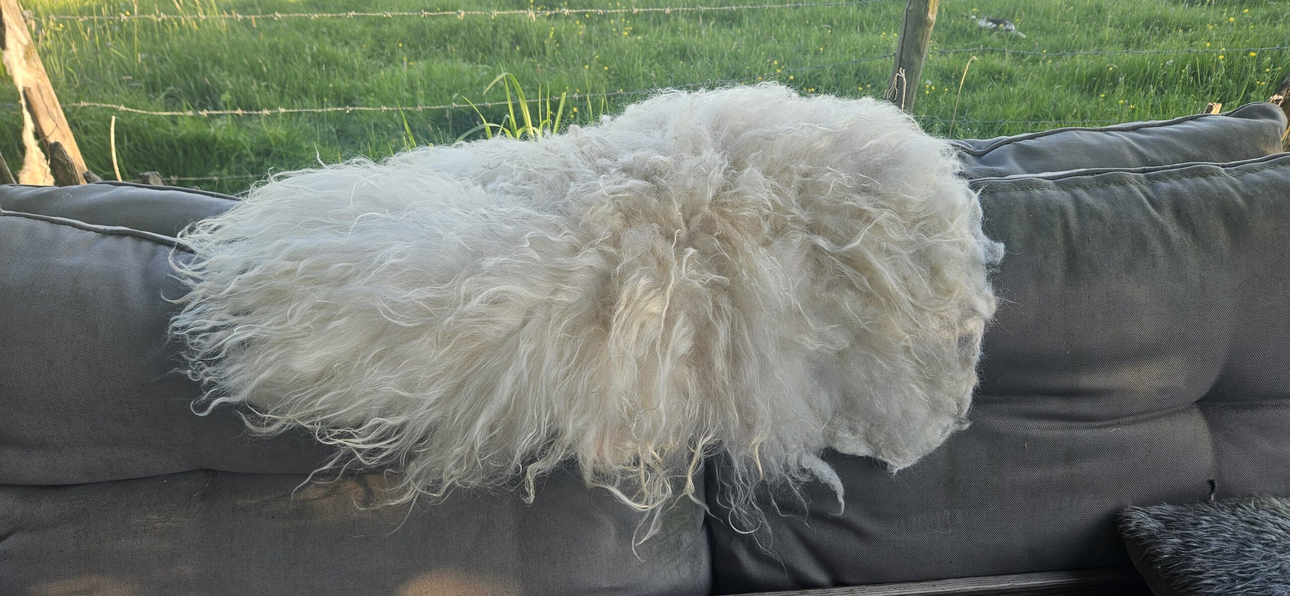 Ondanks het vele wassen en plukken zou u bijvoorbeeld nog een stukje hooi in de vacht kunnen tegenkomen, het is en blijft een natuurproduct.