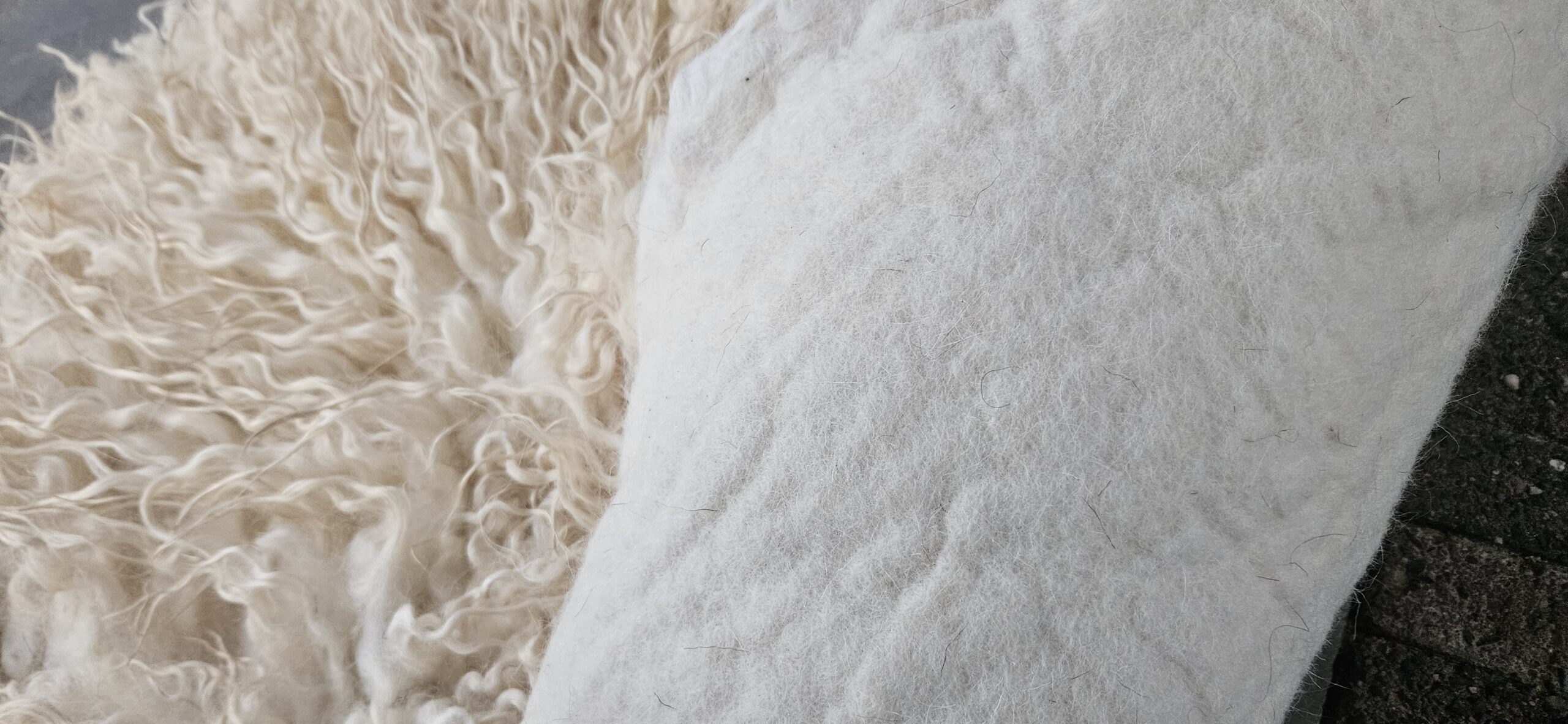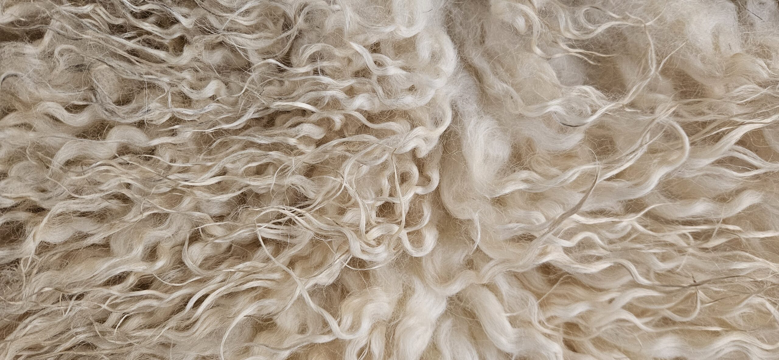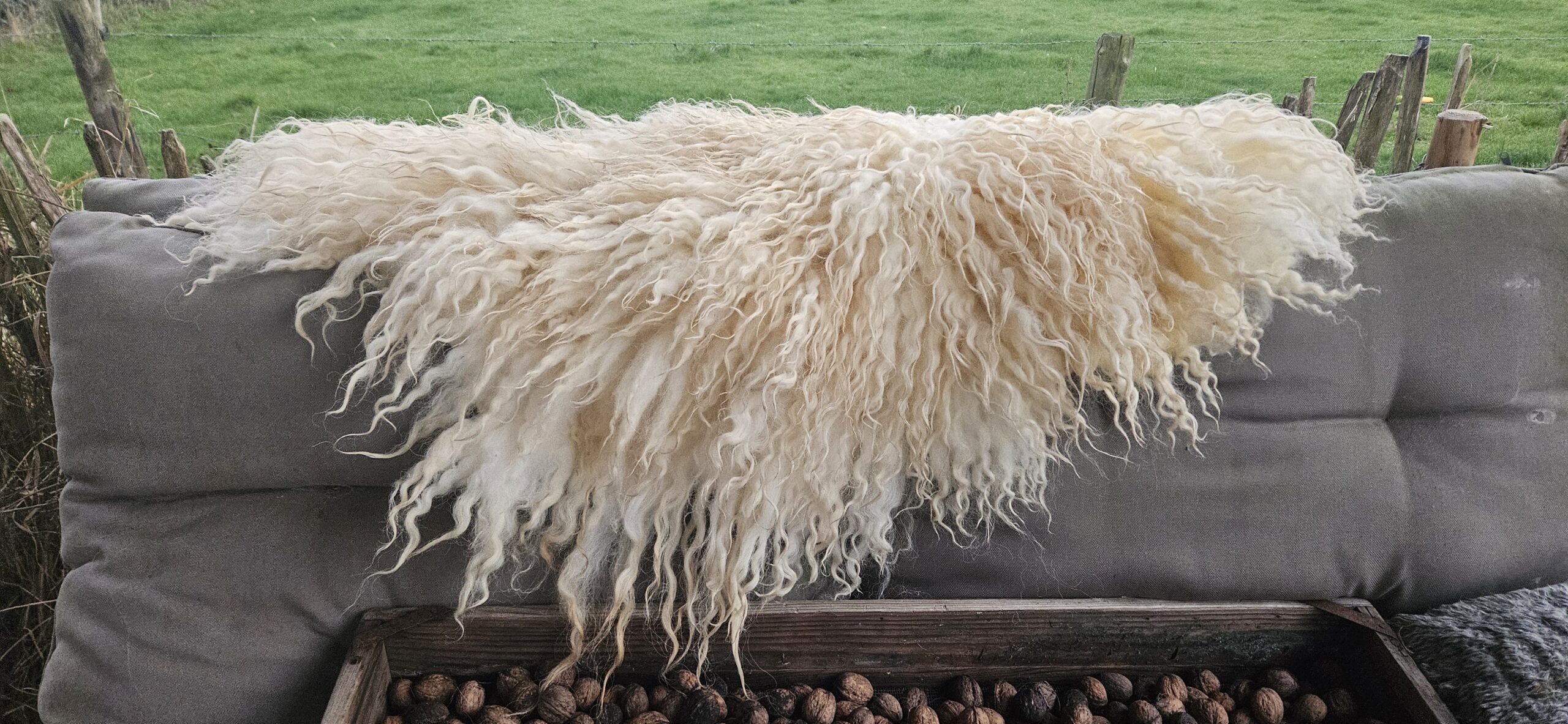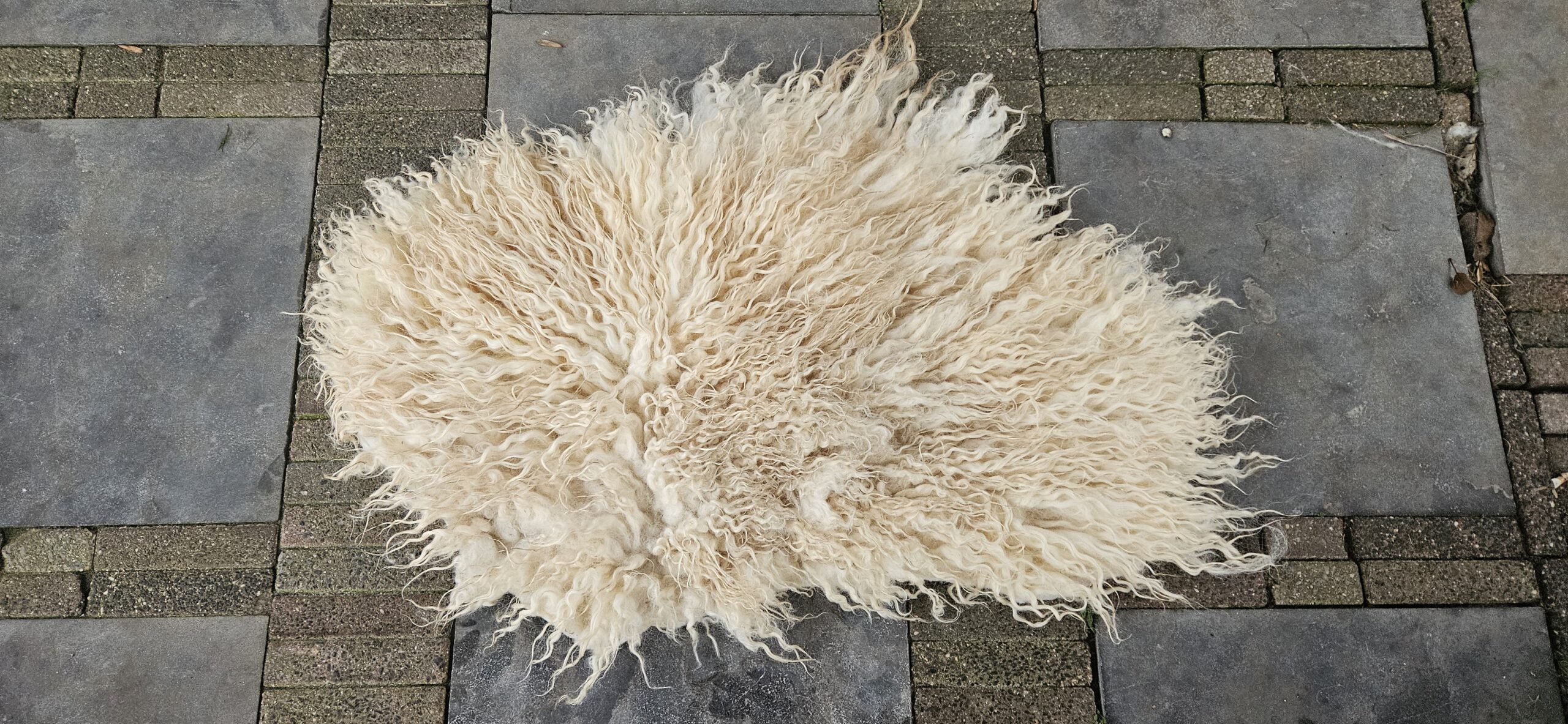 Een prachtige gevilte vacht van het Wensleydale schaap. Lichte champagnekleurige krullen.