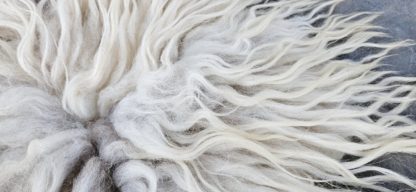 De afmeting van deze schapenvacht is 65 cm x 75 cm, dit is gemeten inclusief de lange lokken.