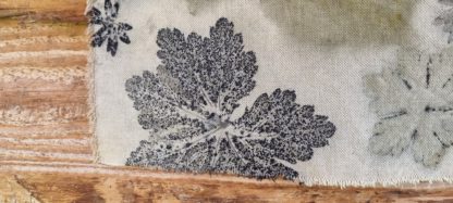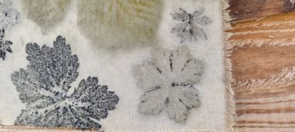 Gemaakt door met bepaalde technieken, natuurlijke hulp- en verfstoffen, de bladstructuren op linnen doek te printen.