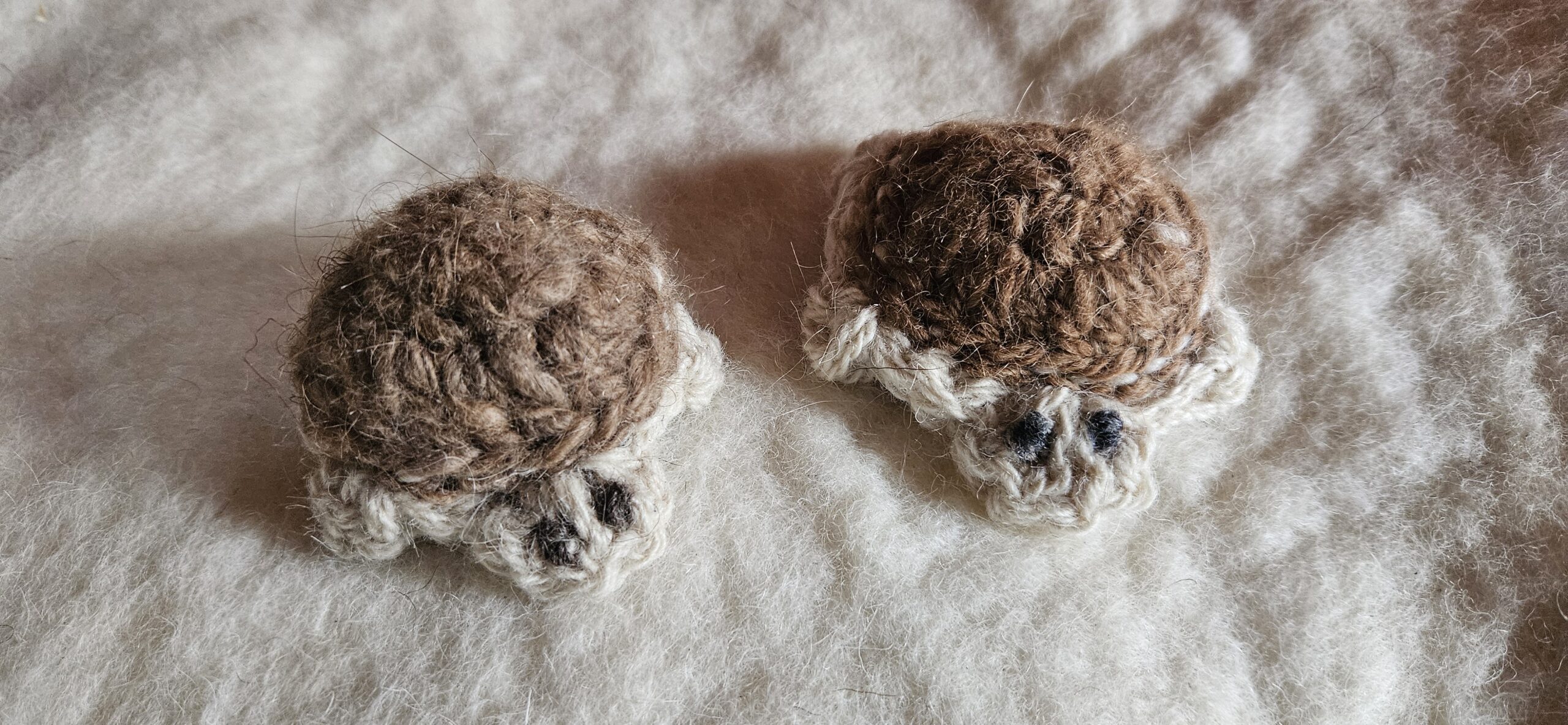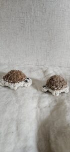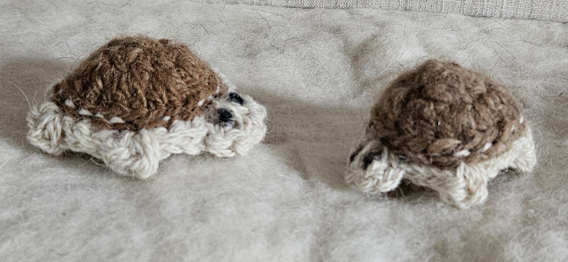 Twee lieve schildpadjes, gehaakt van handgesponnen wol.