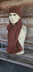 Een prachtige set, deze wollen muts en sjaal, gehaakt van de wol van het Shetland schaap.