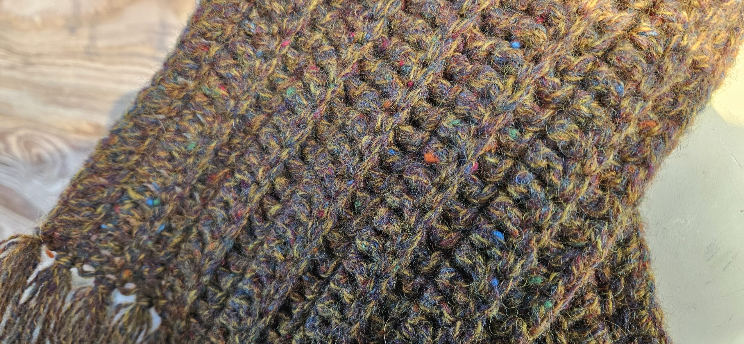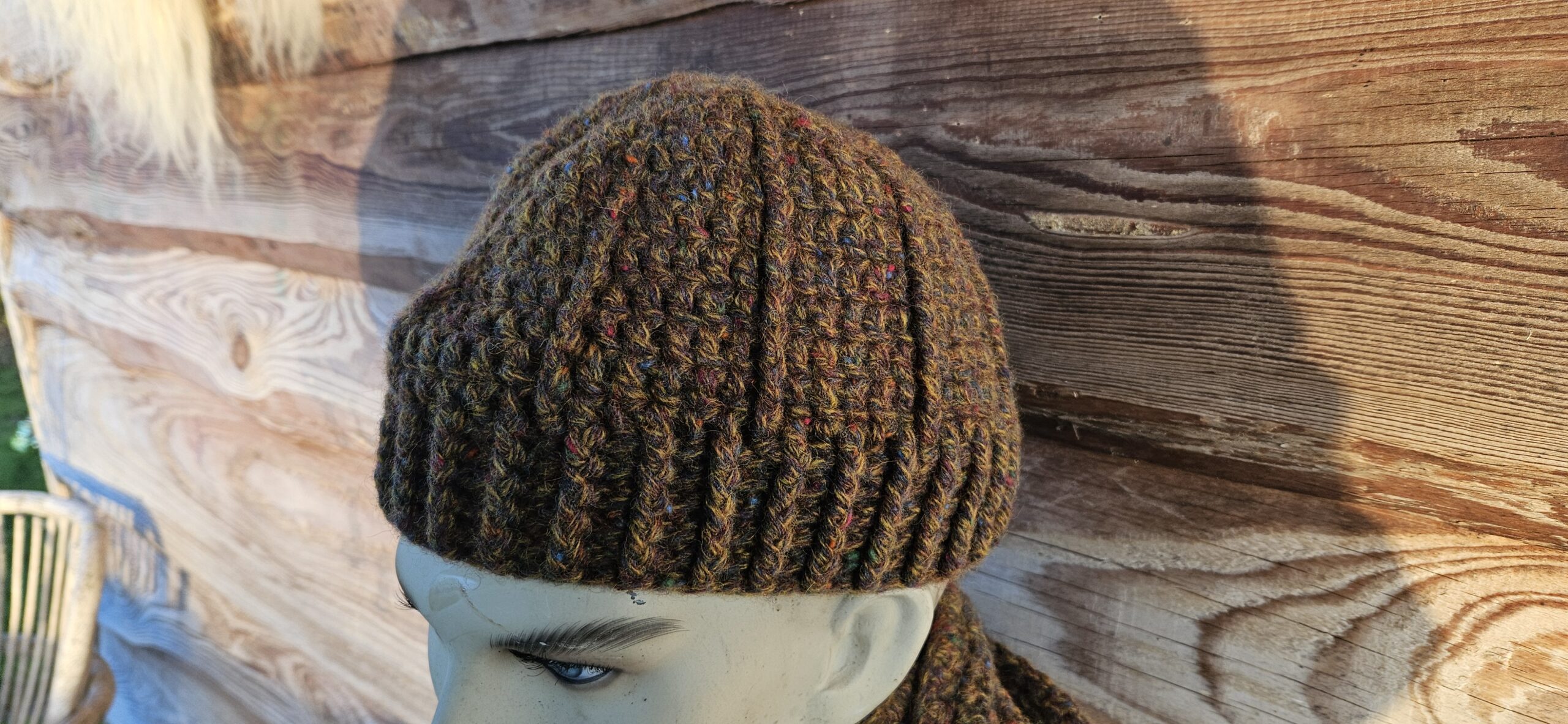 Een prachtige set, deze wollen muts met sjaal! Gehaakt van de wol van het Shetland schaap.