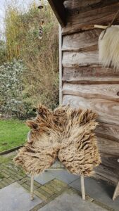 De afmeting van deze schapenvacht is 90 cm x 110 cm.