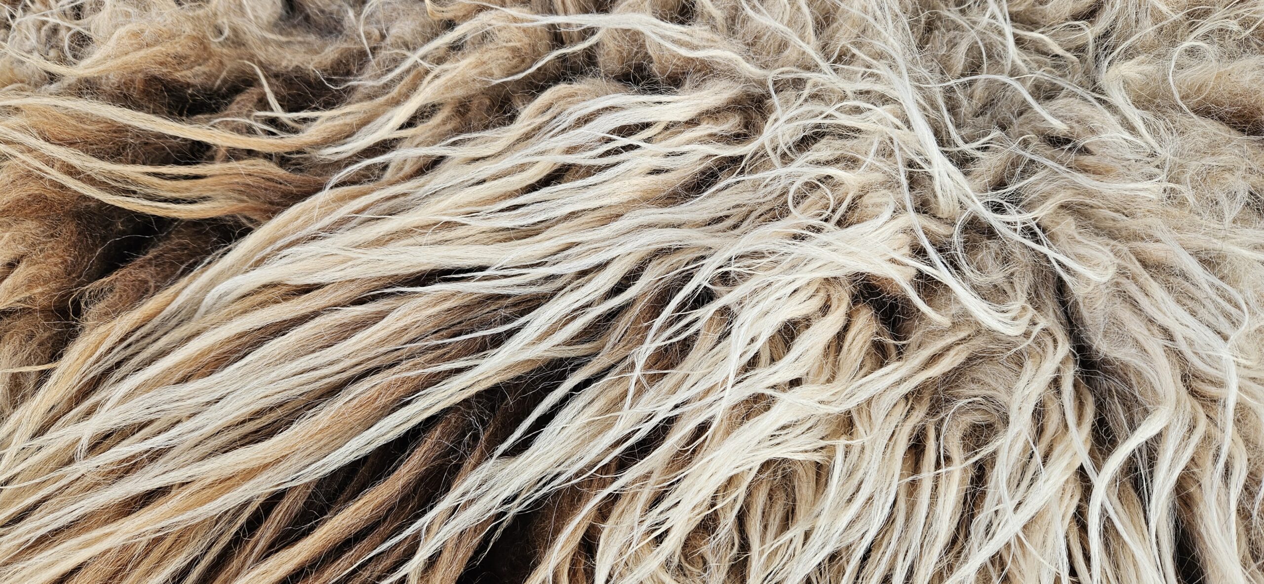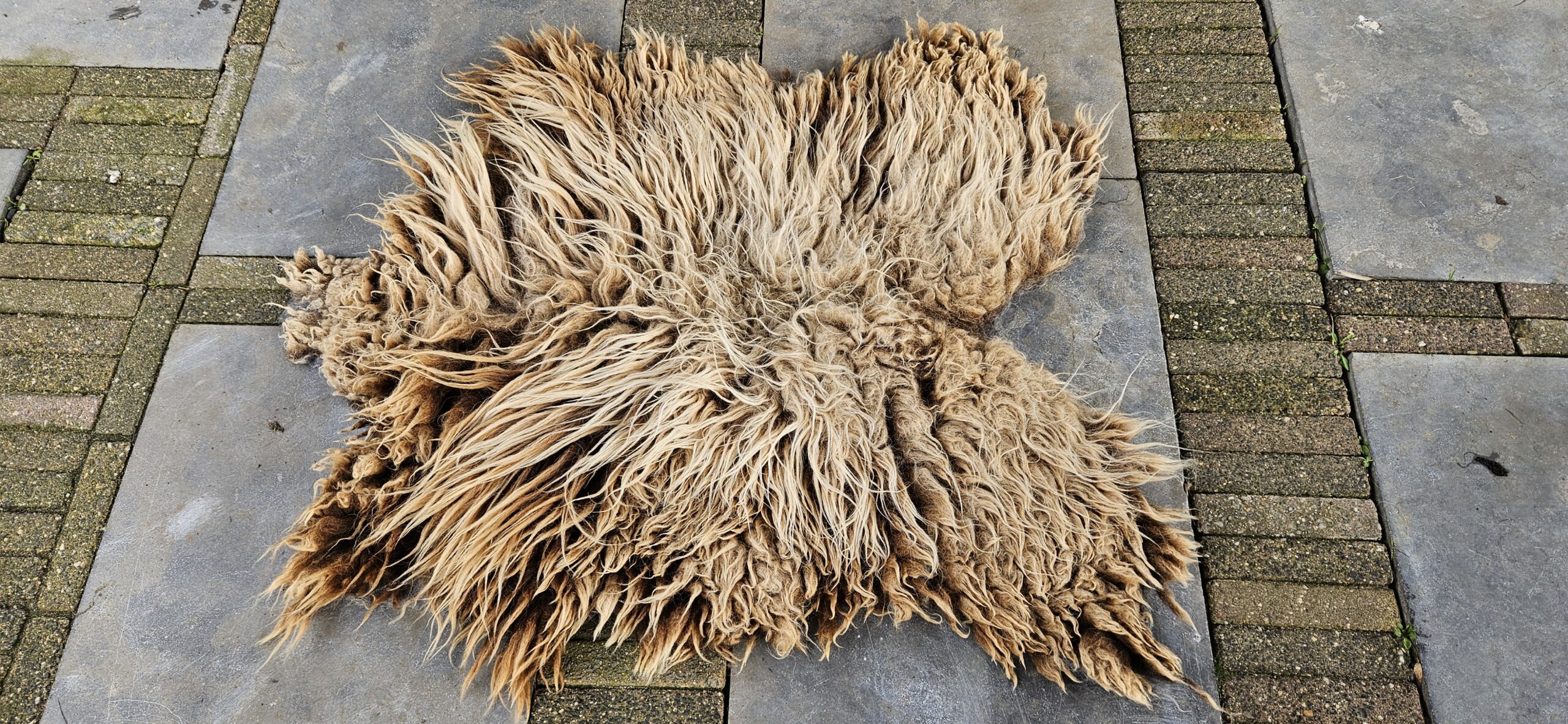 Dikke, stevige vacht van het Bergschaap. Mooie bruine/ beige kleuren!