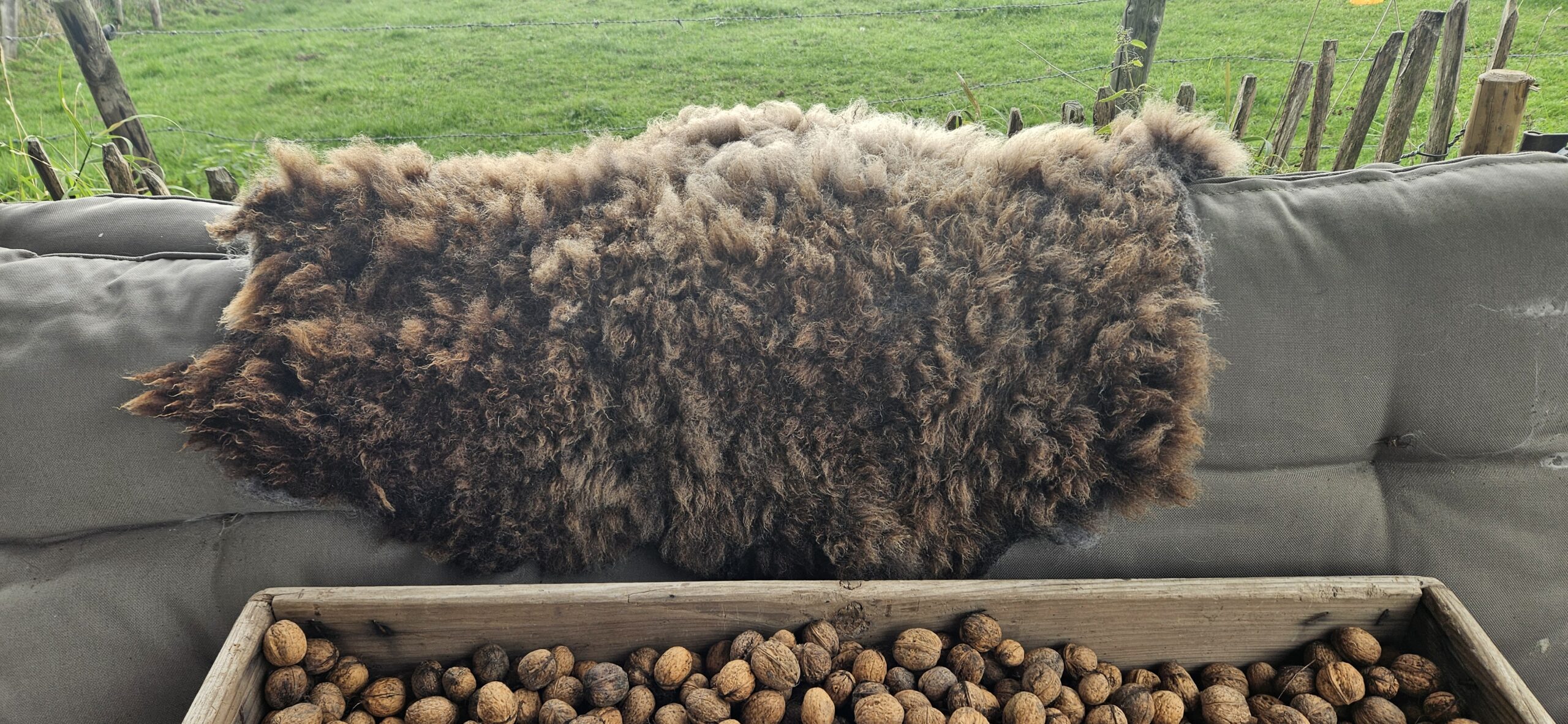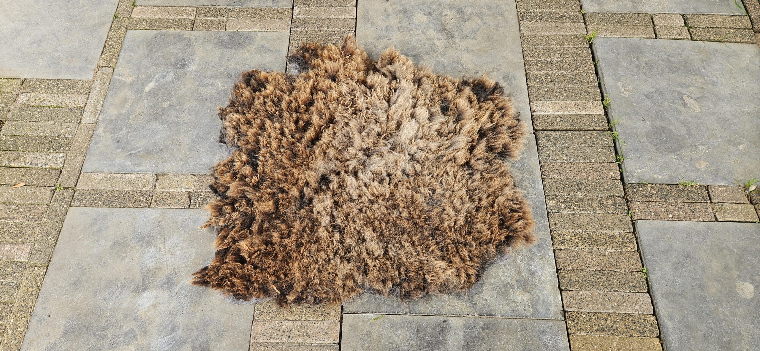 Heerlijk zachte, gevilte vacht van het Blauwe Texelaar schaap. Deze schapenvacht is fluffy geborsteld.