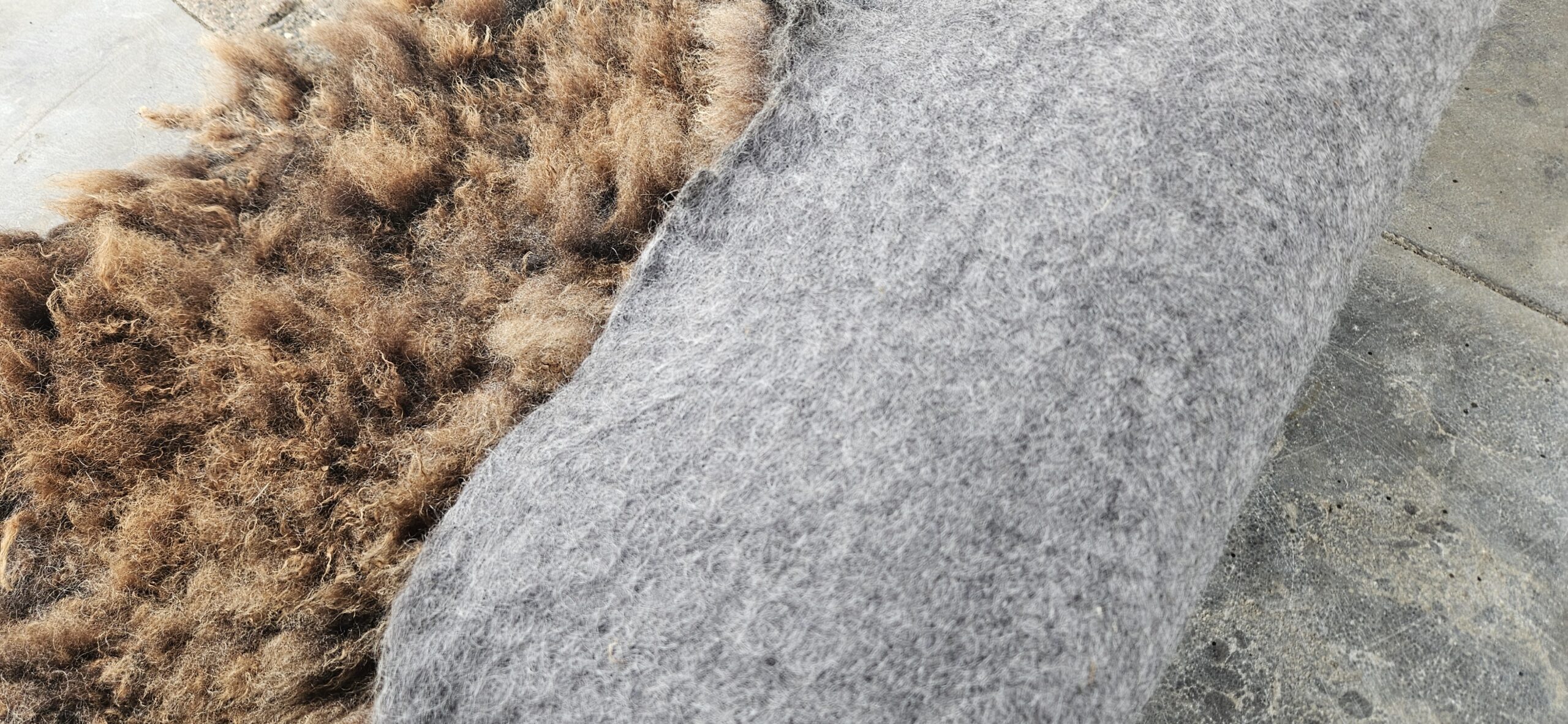 De geschoren schapenvacht is door middel van handwerk op gekaarde wol gevilt, 100% diervriendelijk en duurzaam! Leervrij.