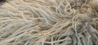 Mooie witte, gevilte vacht van het Drents Heideschaap.