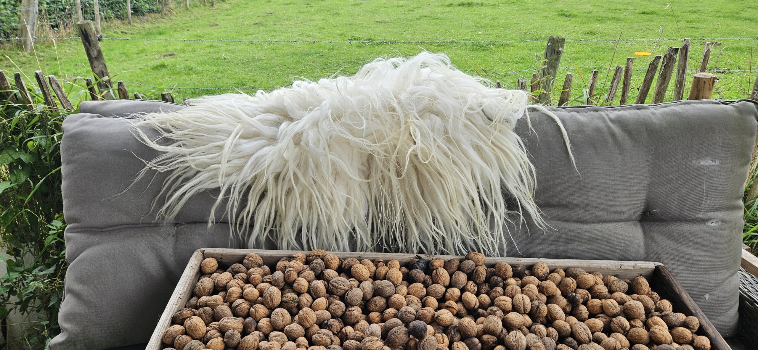 Ondanks het vele wassen en plukken zou u bijvoorbeeld nog een stukje hooi in de vacht kunnen tegenkomen, het is en blijft  een natuurproduct.