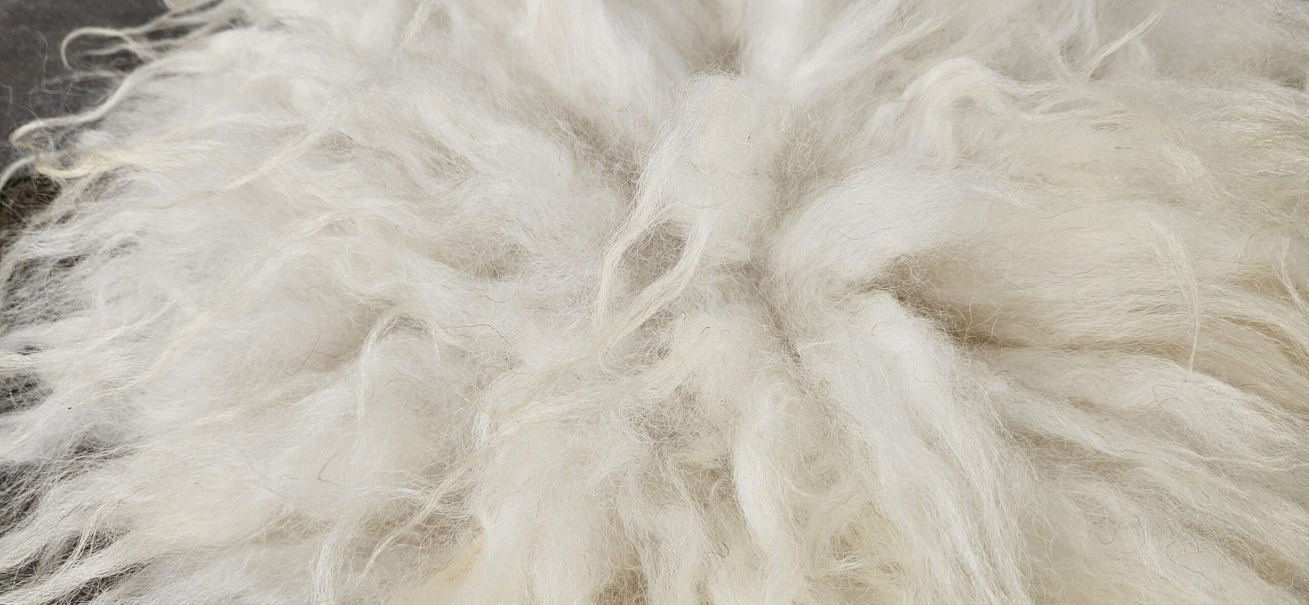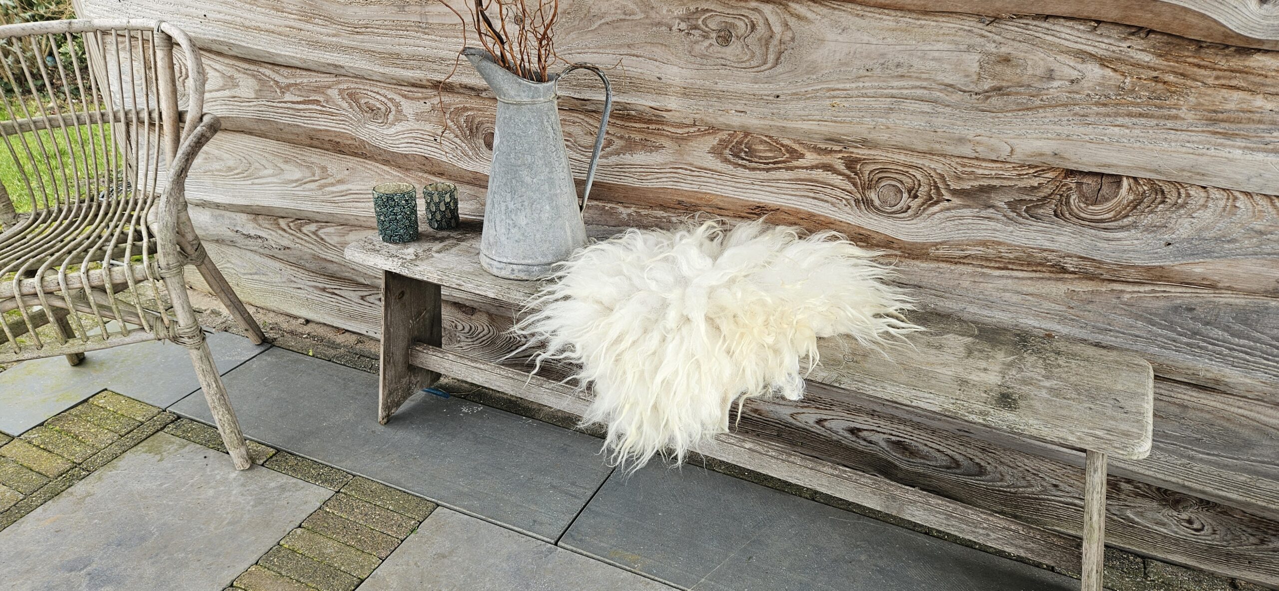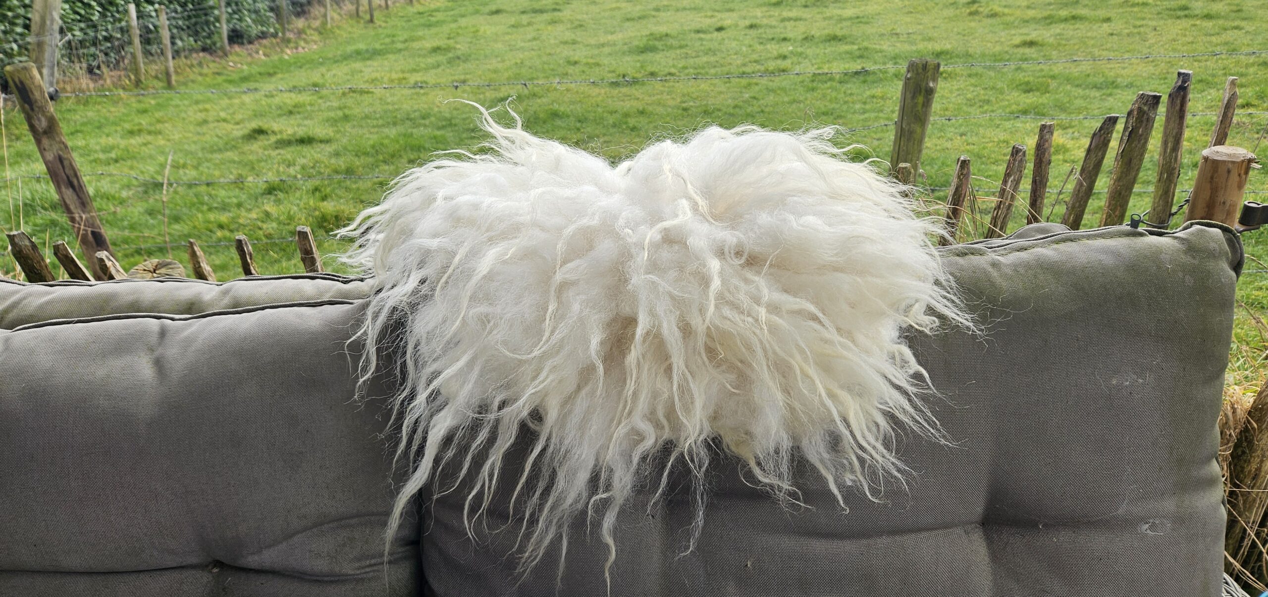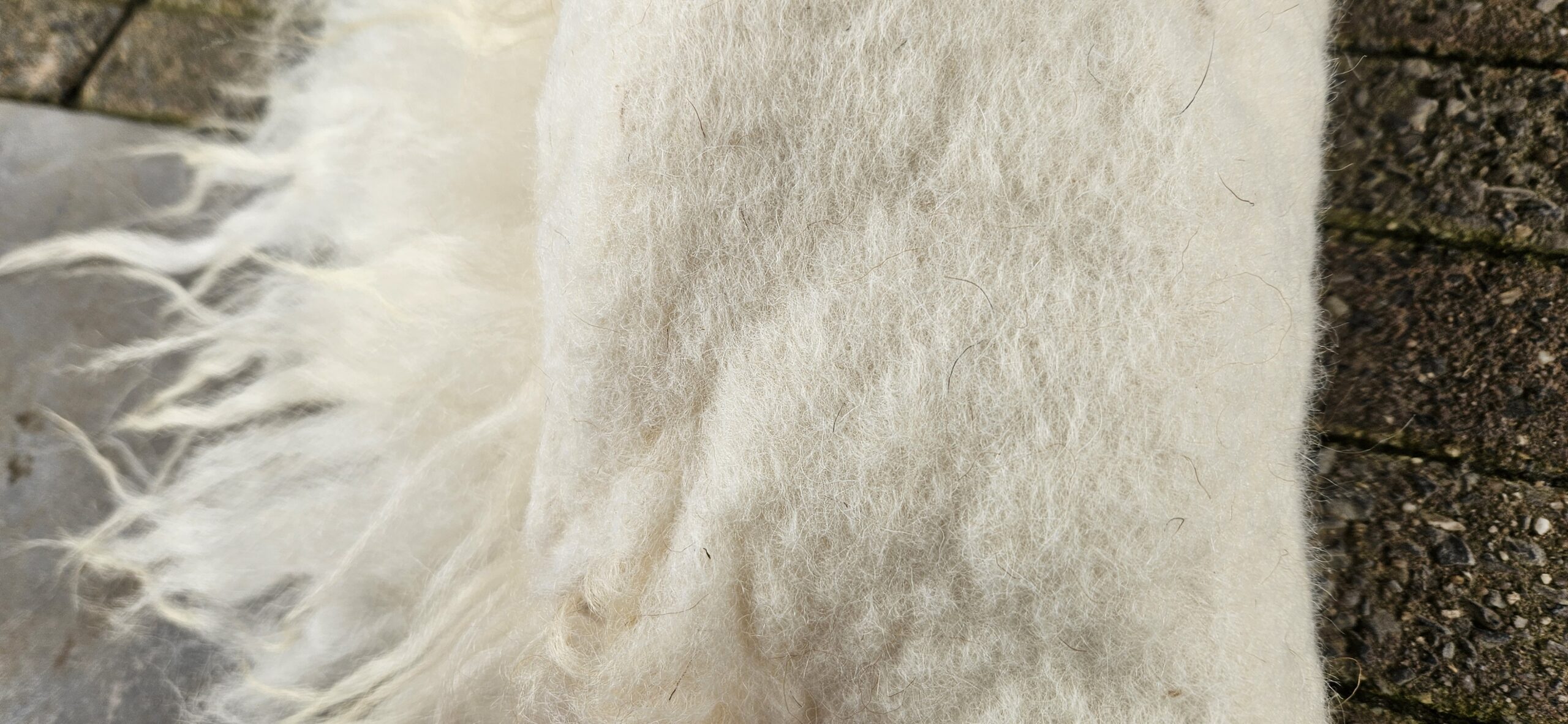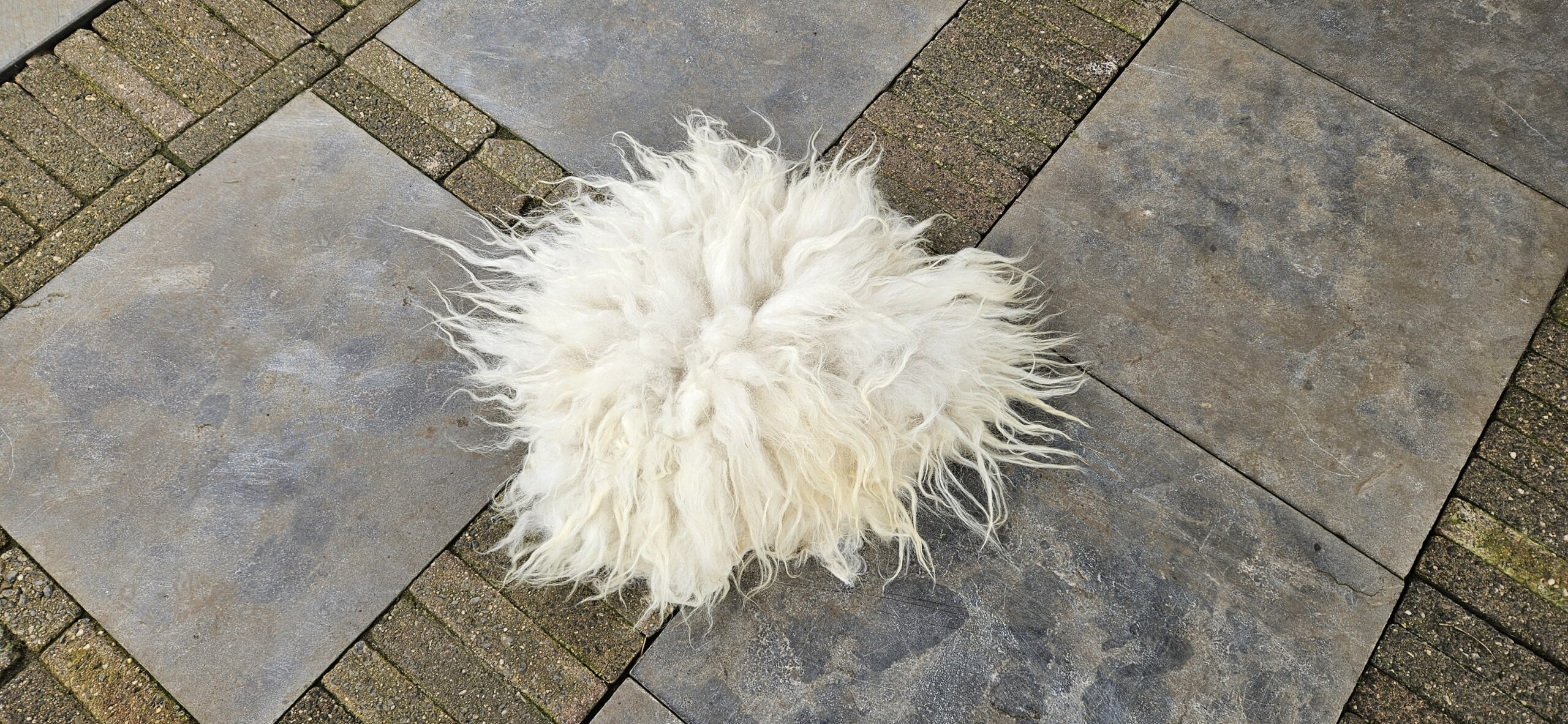 Mooi helder wit vachtje van het Drents Heideschaap.
