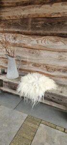 De afmeting van deze schapenvacht is 55 cm x 55 cm.