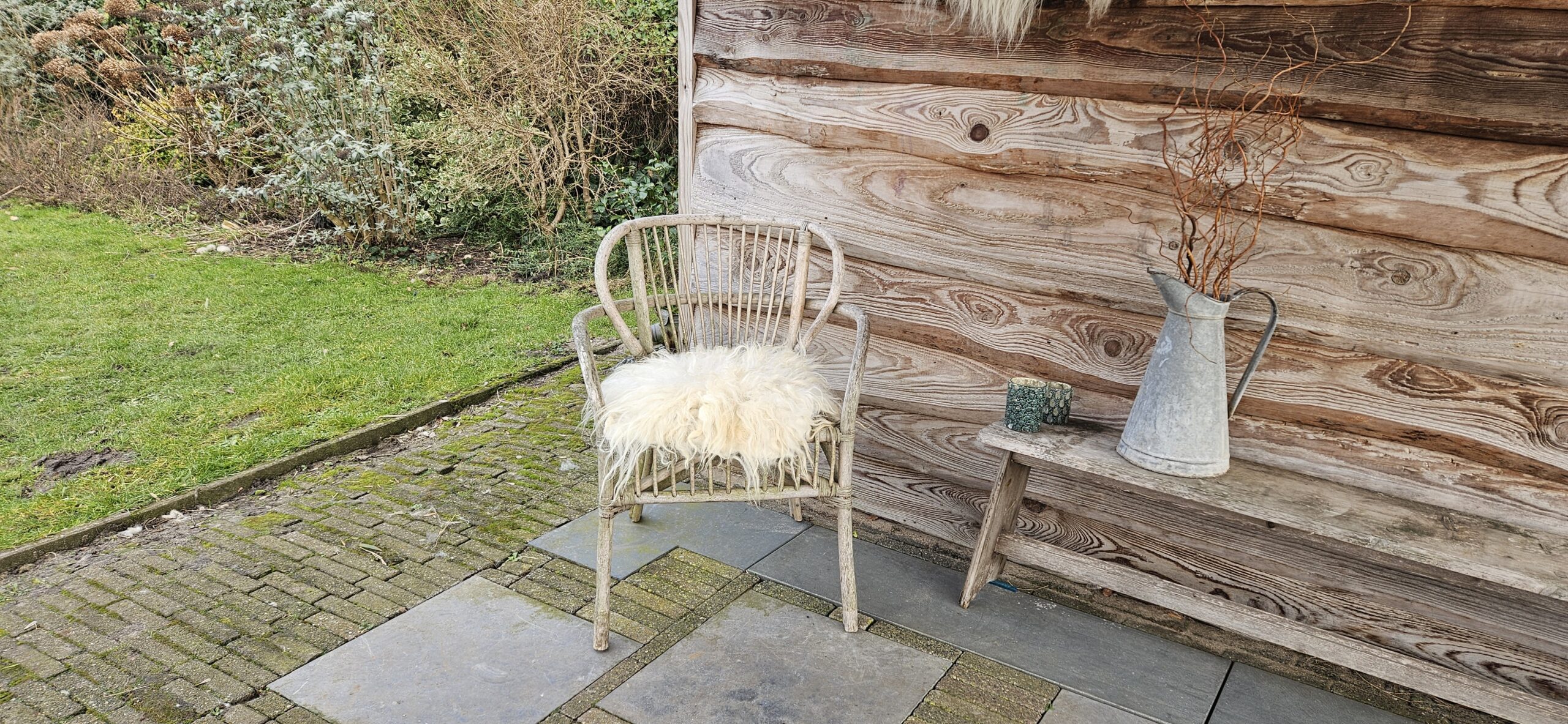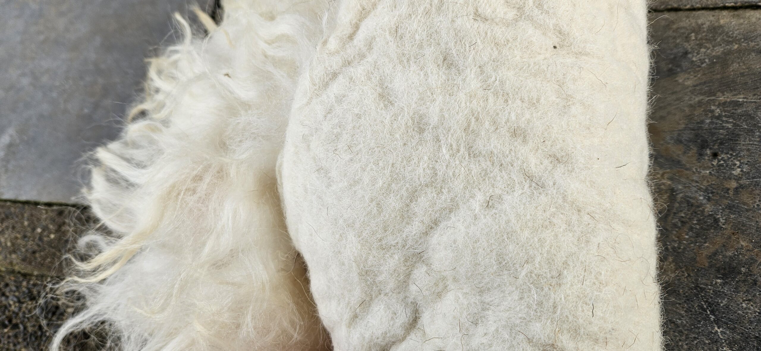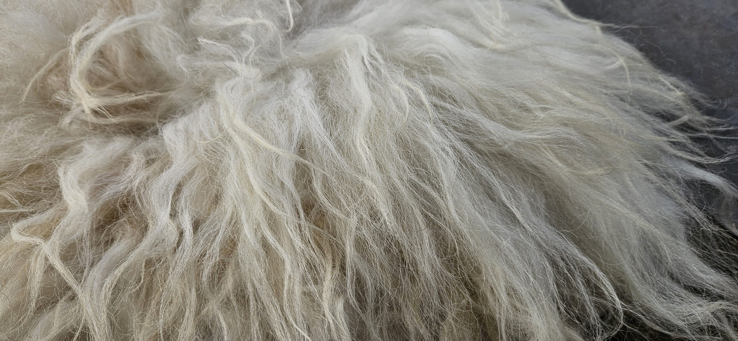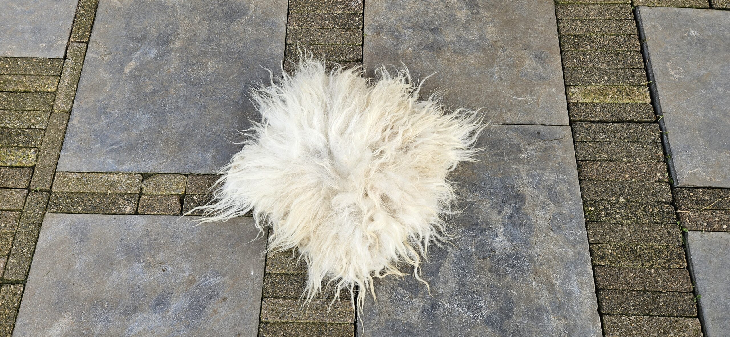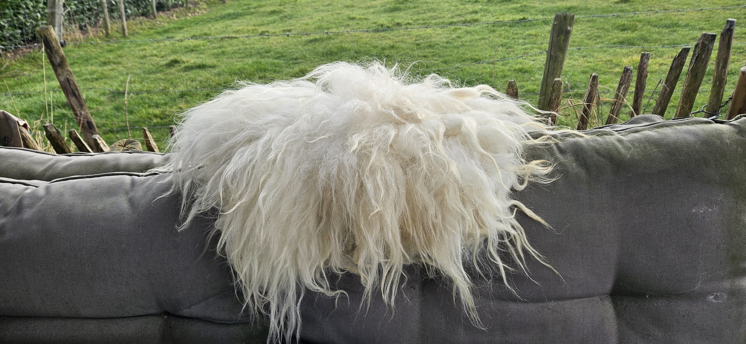 Mooi wit vachtje van het Drents Heideschaap.