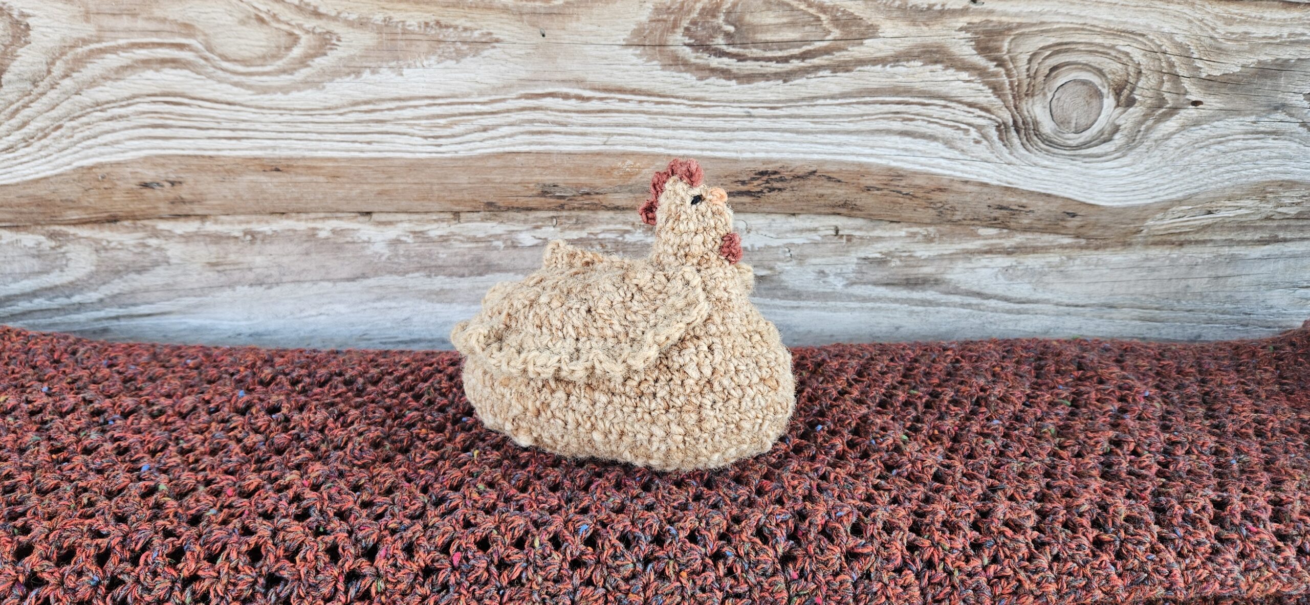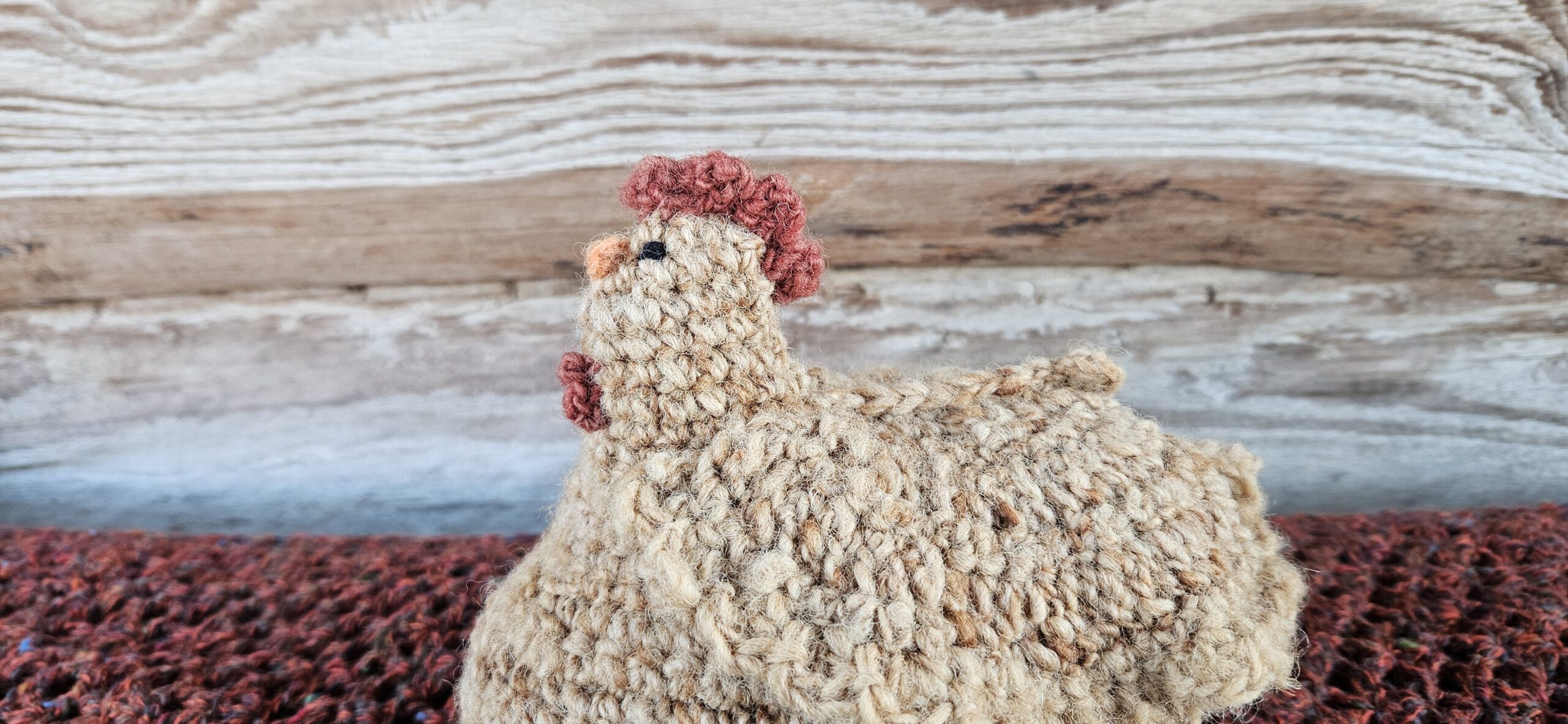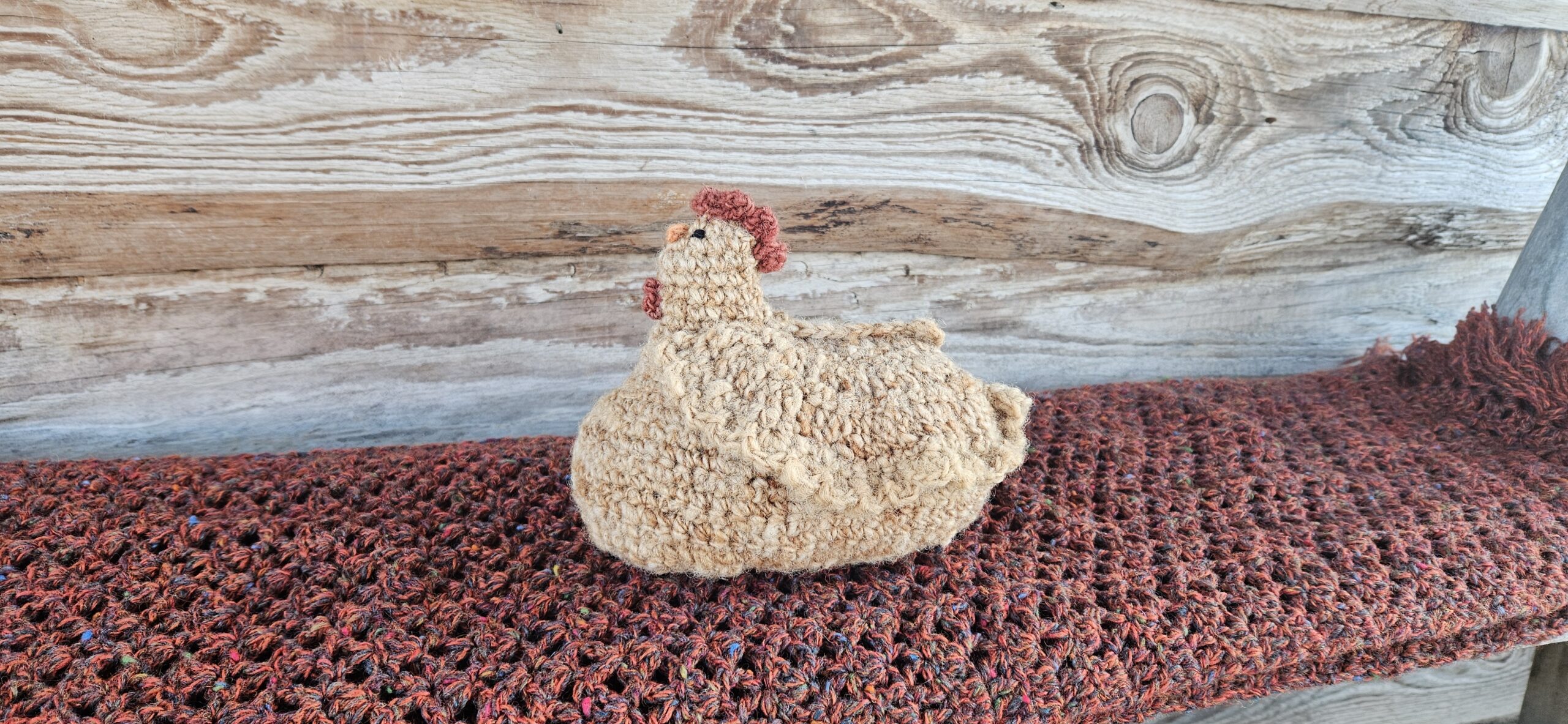 Deze kip is gehaakt met de geverfde wol van het Swifter schaap.