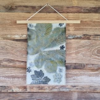 Wollen poezenmand, gehaakt van handgesponnen schapenwol van het Nederlands Bonte schaap. De bovenste rand is verstevigd d.m.v. het omhaken van een ijzeren ring.