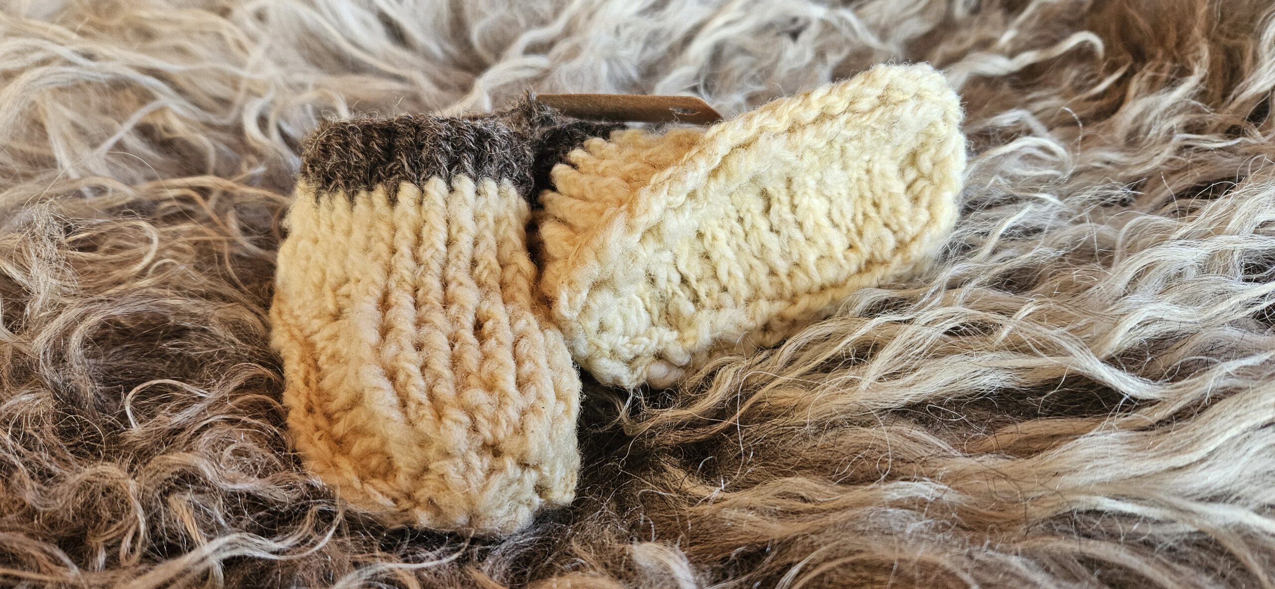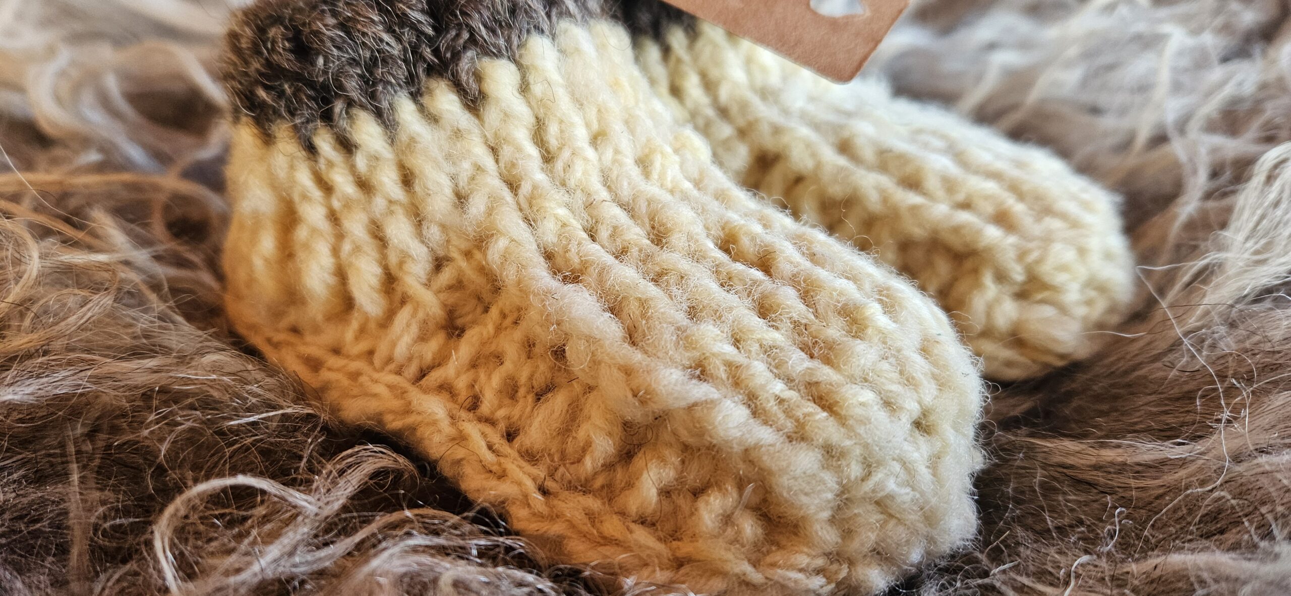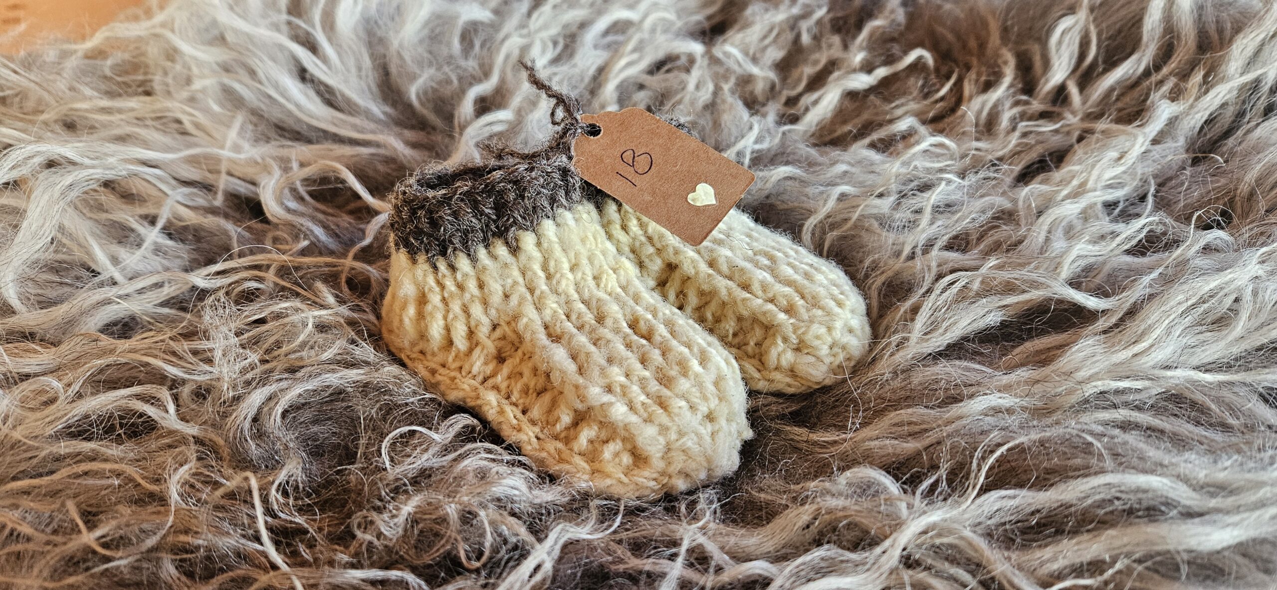 Wollen slofjes wit/bruin maat 18