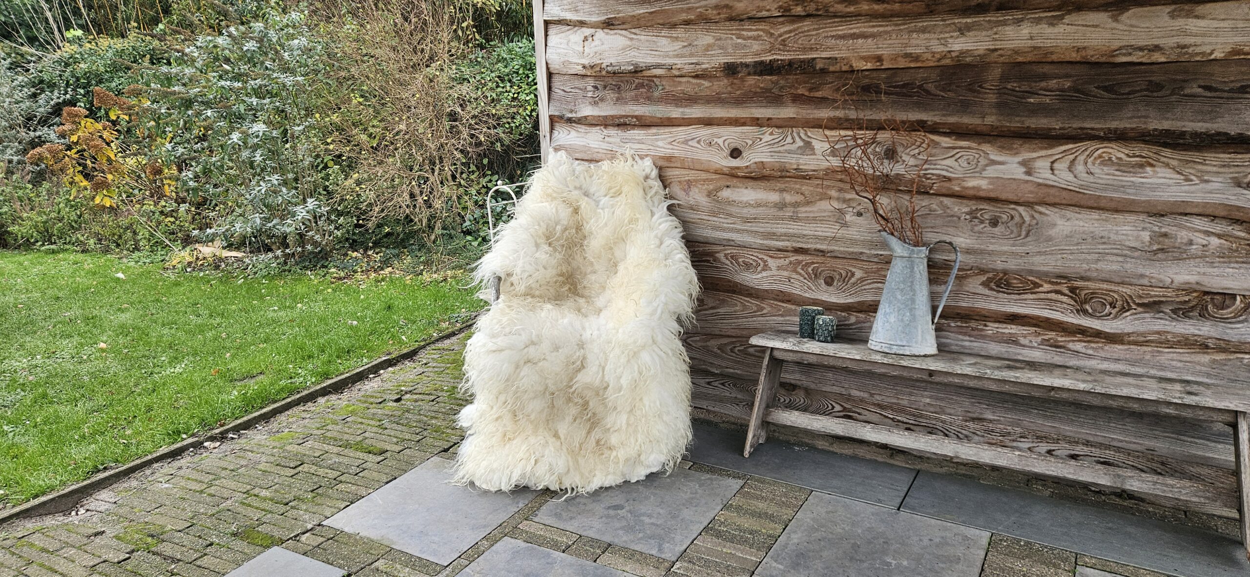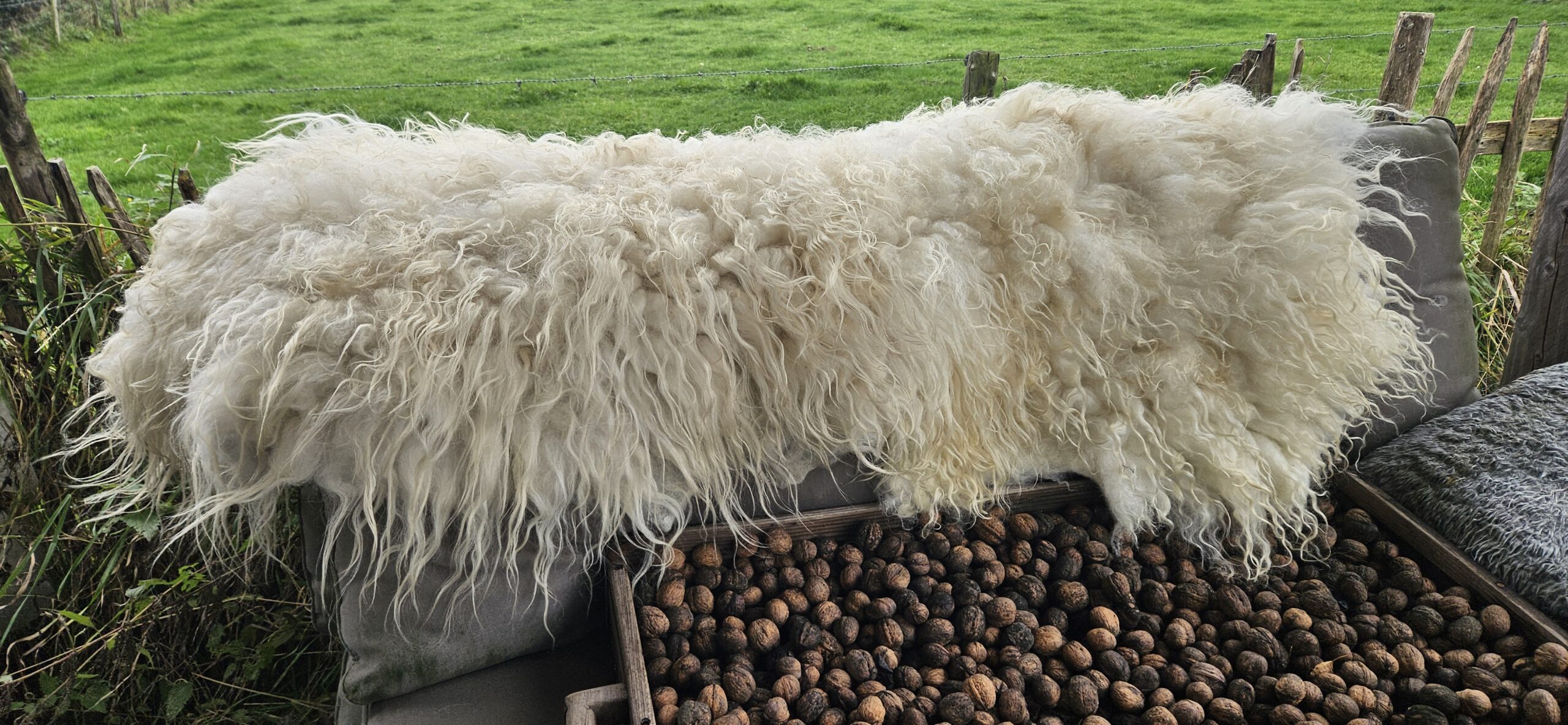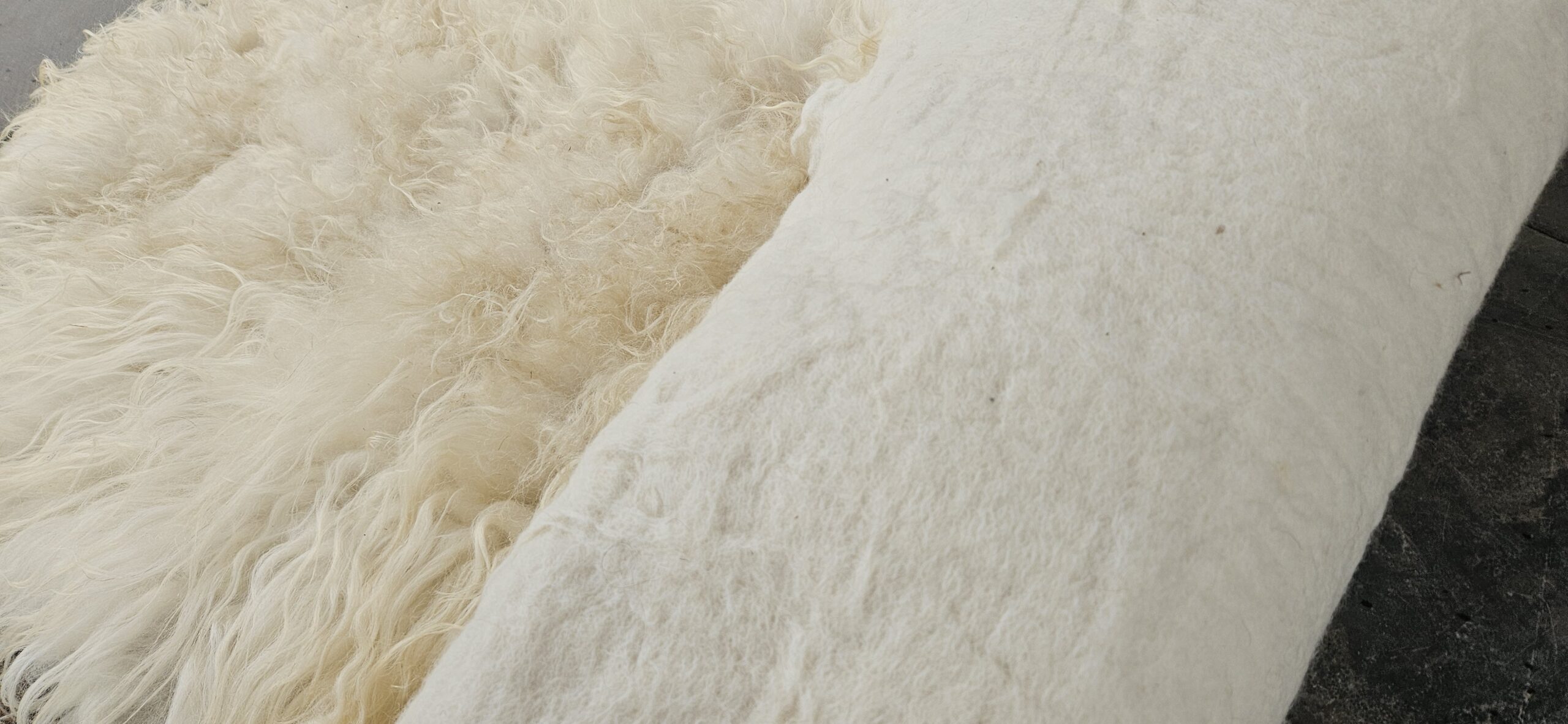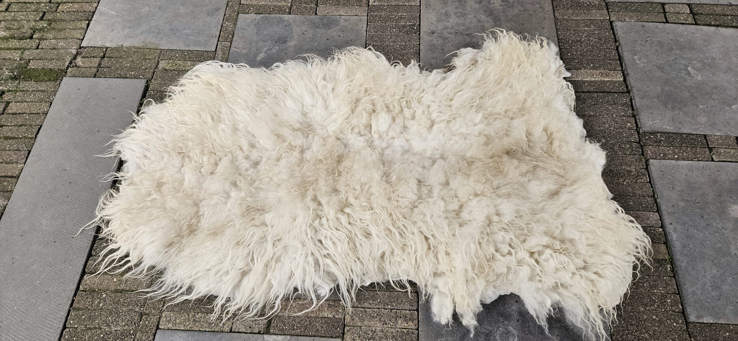 Mooie witte, gevilte vacht van het Drents Heideschaap. 100% wol.